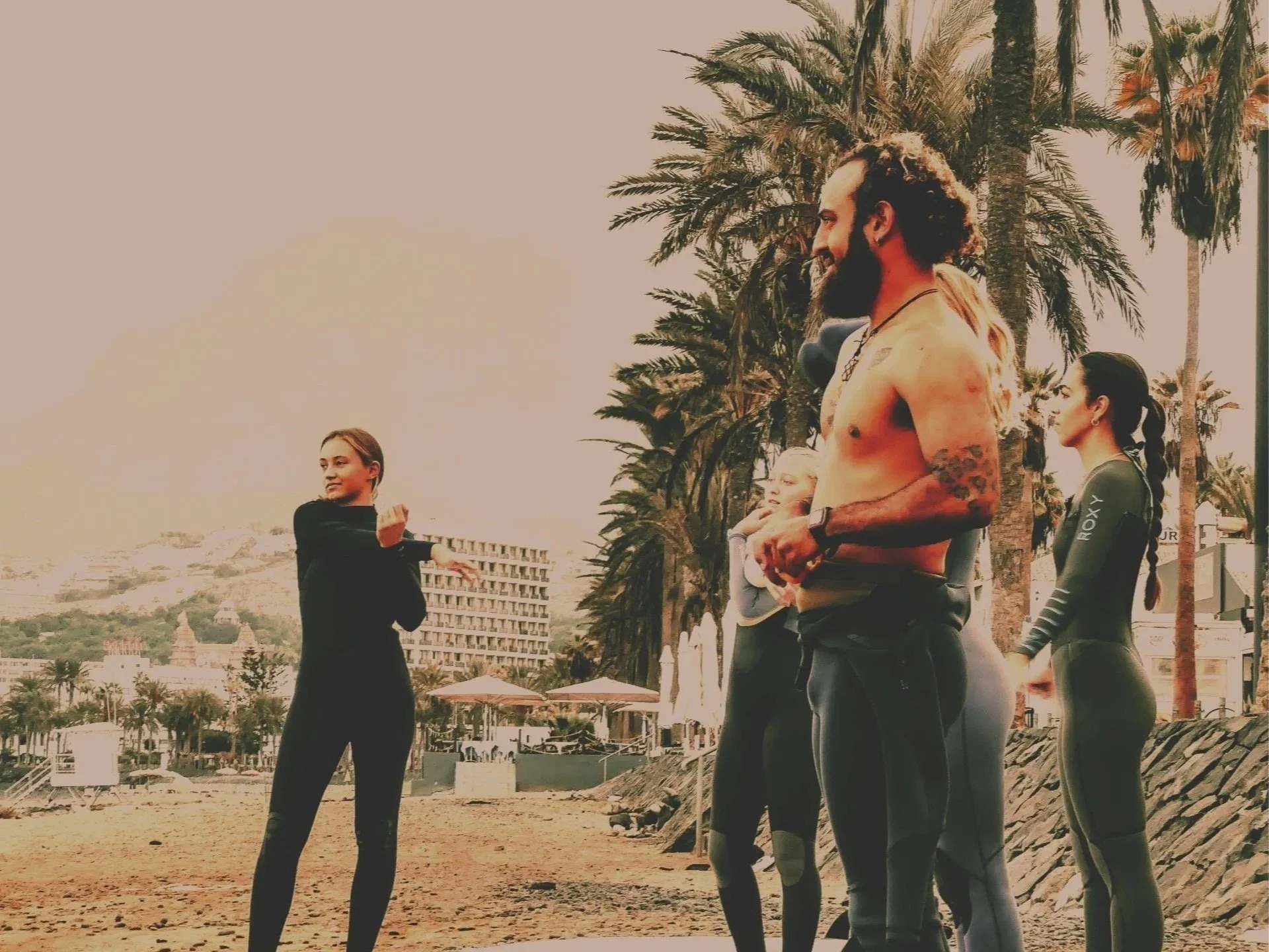 Beginner‑friendly surf school in Tenerife with small groups, patient instructors and a women‑focused approach that helps you feel safe, supported and stoked every time you paddle out.